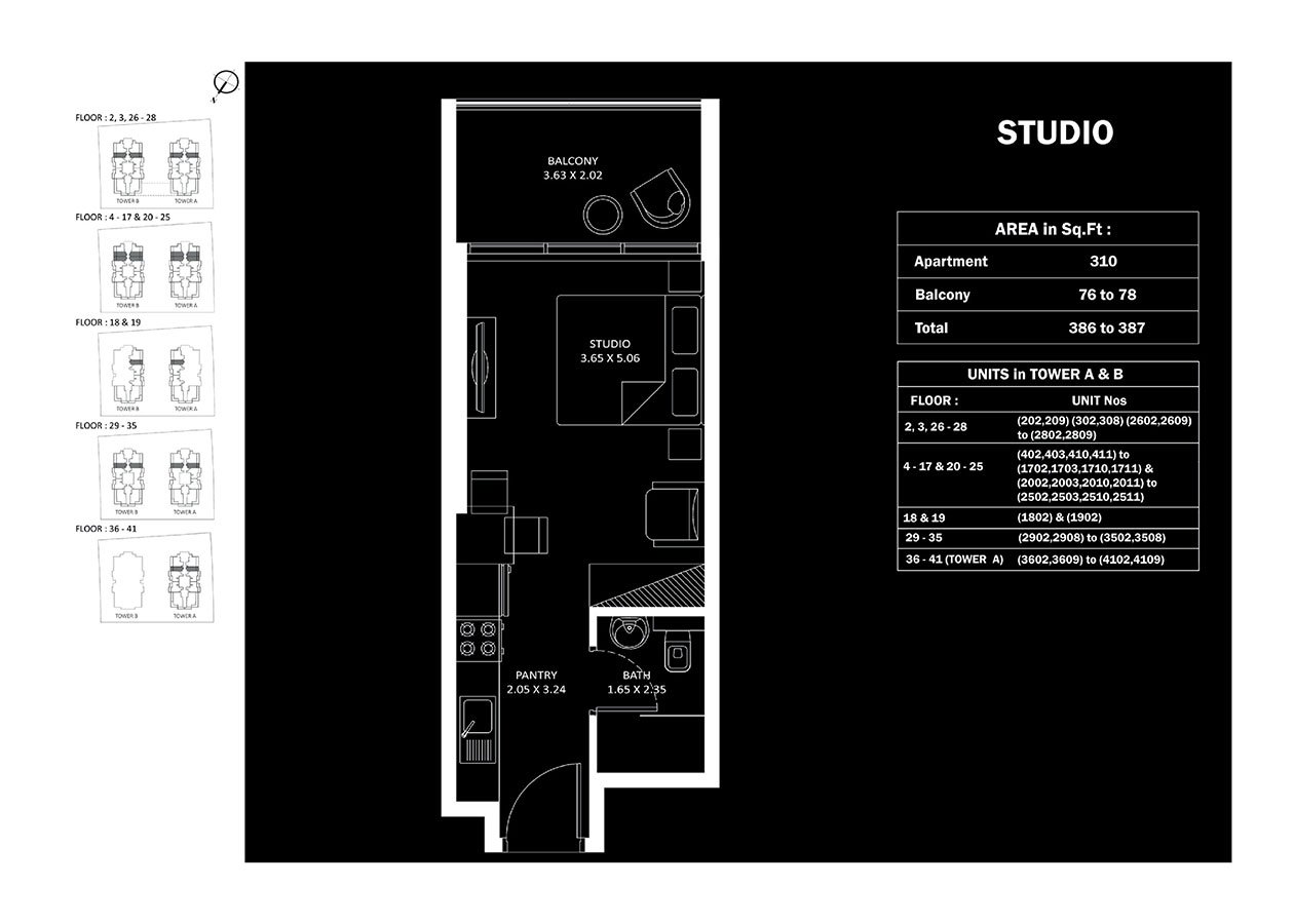 Tower A & B | - | Studio | 387.00 Sq Ft | Apartment |