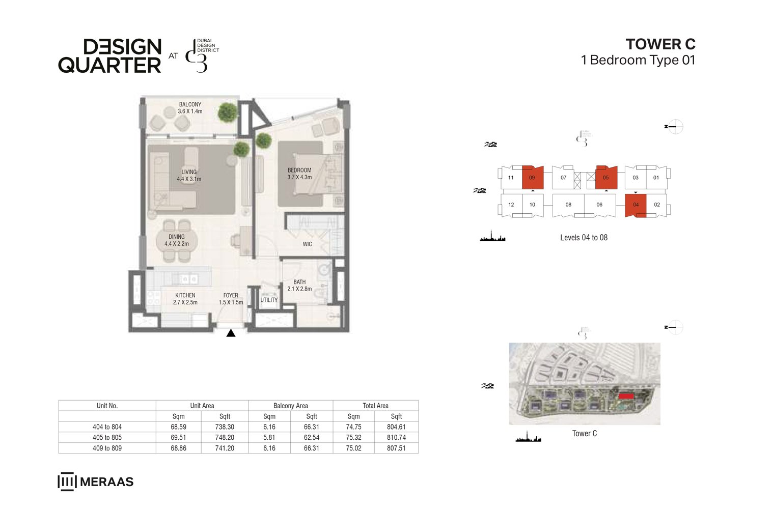 Tower C - Type 01 798.79 Sq Ft Apartment