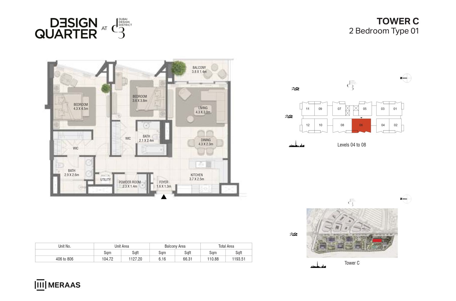 Tower C - Type 01 1193.51 Sq Ft Apartment