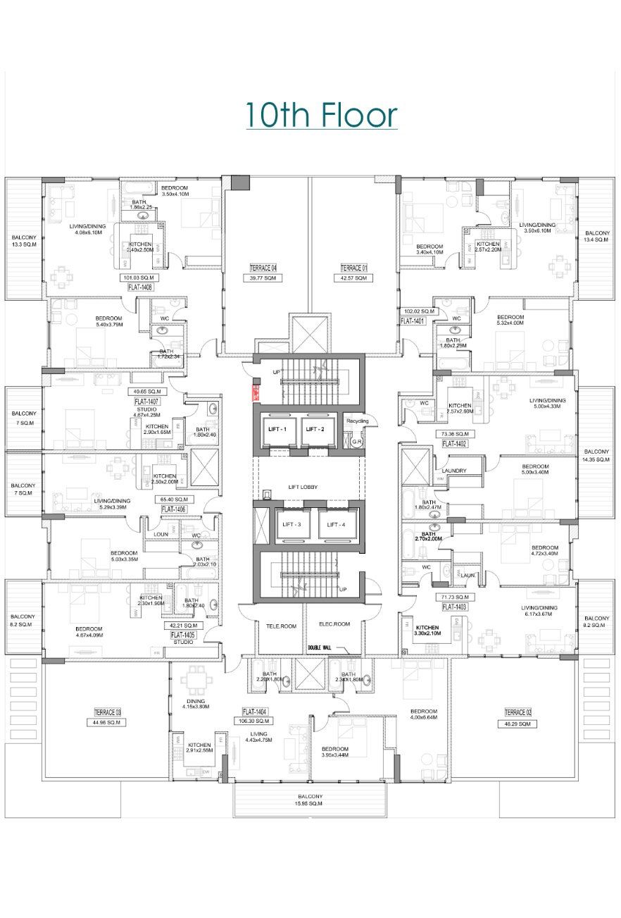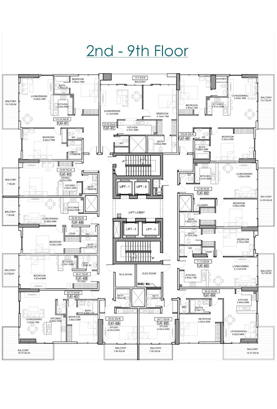 Floor plan - Floor Plan 2nd - 9th Floor On Request Apartment