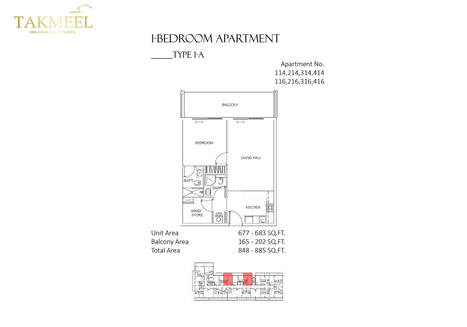 1 Bedroom | - | Type 1-A | 885.00 Sq Ft | Apartment |