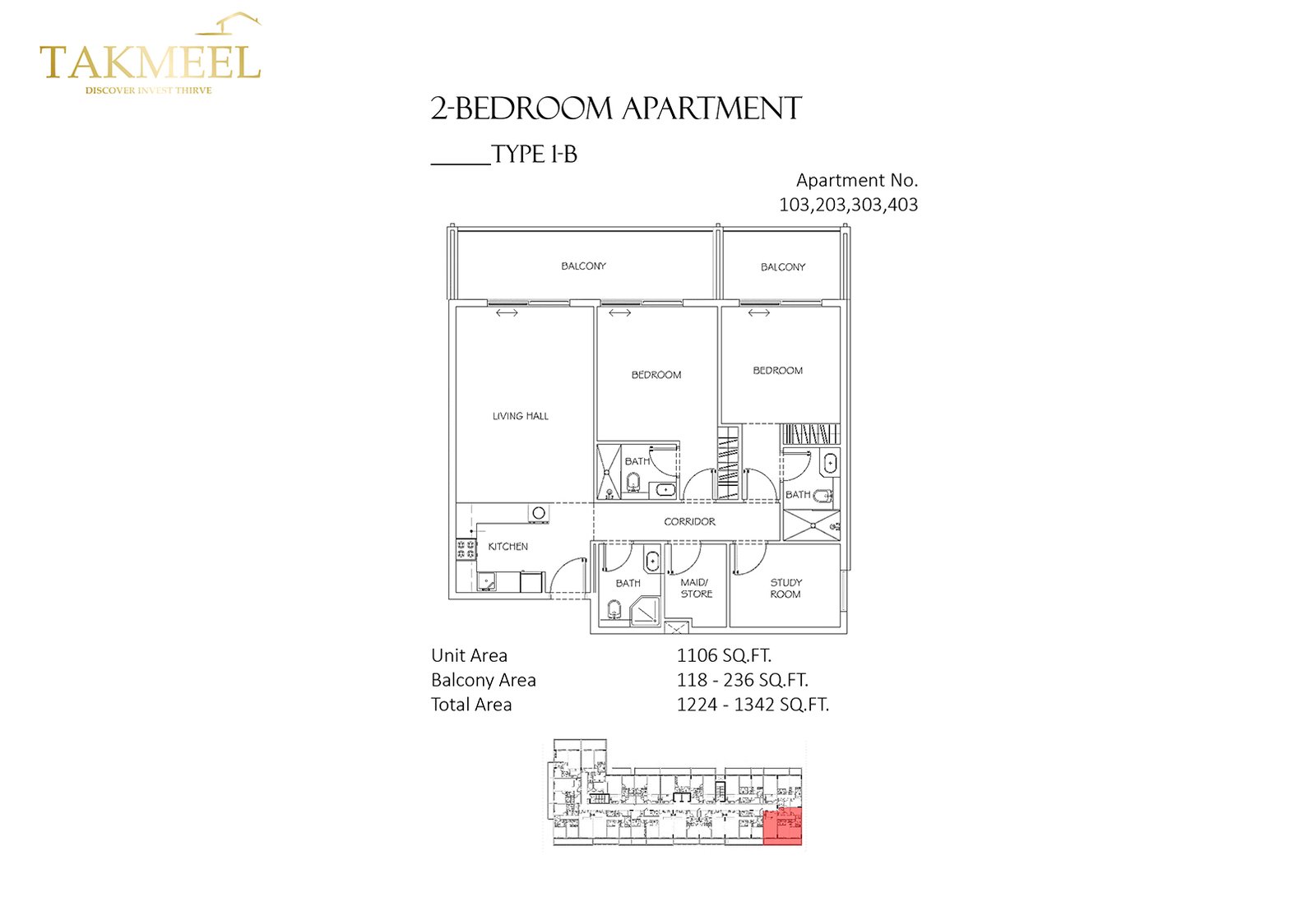 2 Bedroom | - | Type 1-B | 1342.00 Sq Ft | Apartment |