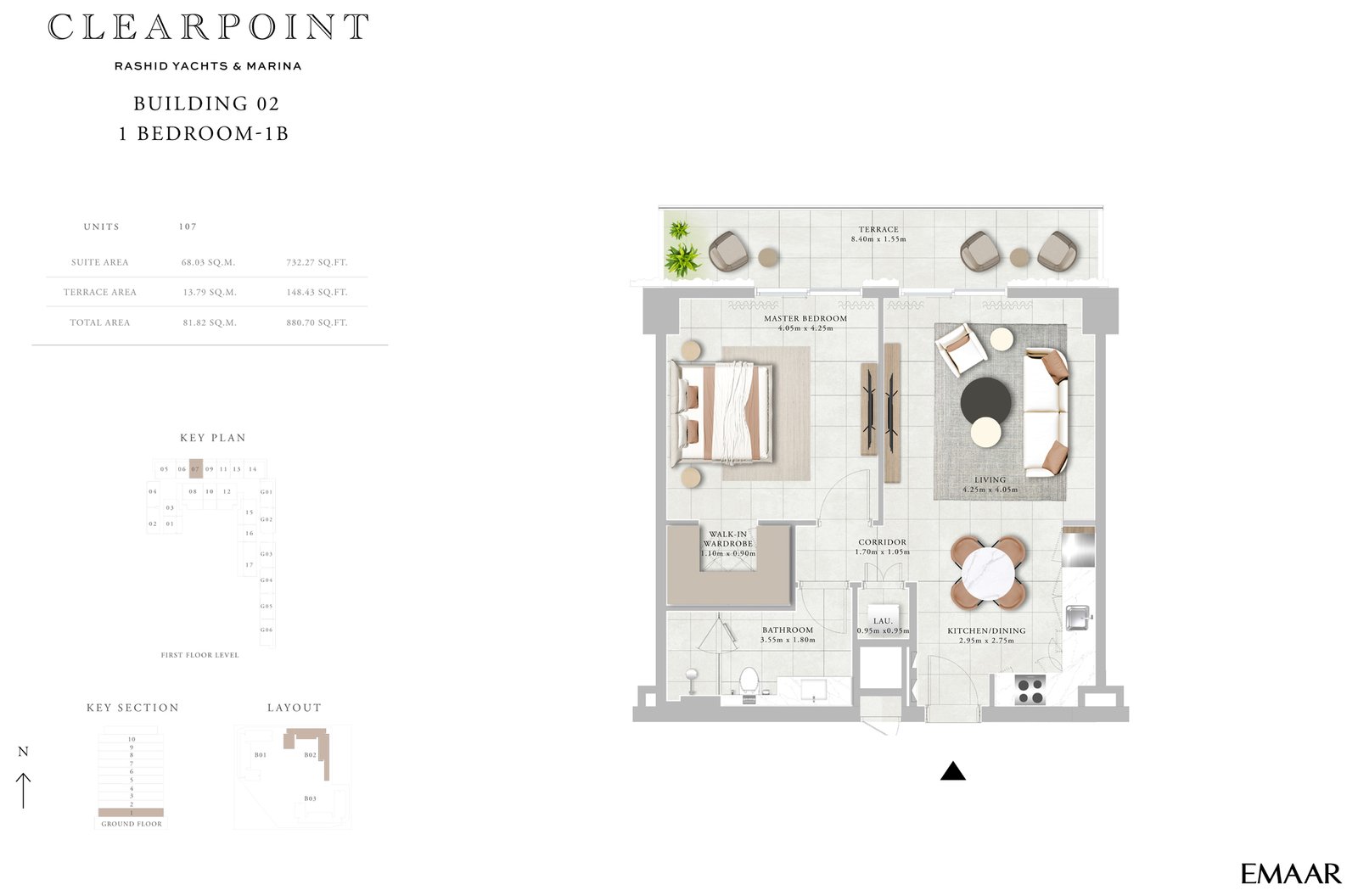 Building 2 | - | 1 Bedroom-1B | 880.70 Sq Ft | Apartment |