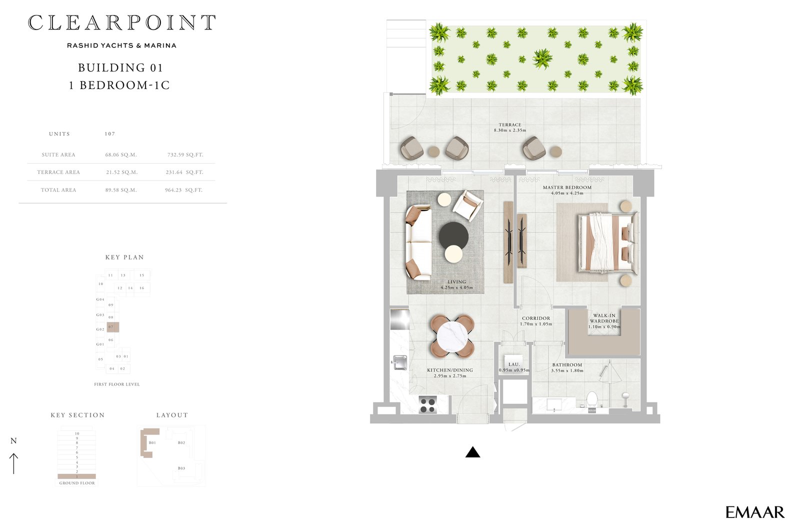 Building 1 | - | 1 Bedroom-1C | 964.23 Sq Ft | Apartment |