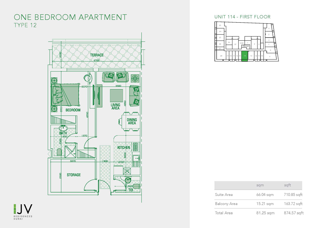 1 Bedroom | - | Type 12, Unit 114 - First Floor | 874.57 Sq Ft | Apartment |