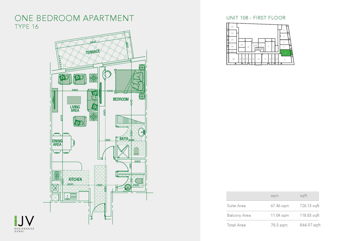 1 Bedroom | - | Type 16, Unit 108 - First Floor | 844.97 Sq Ft | Apartment |