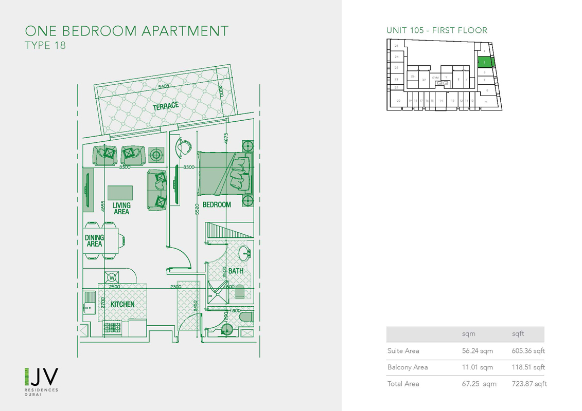 1 Bedroom | - | Type 18, Unit 105 - First Floor | 723.87 Sq Ft | Apartment |