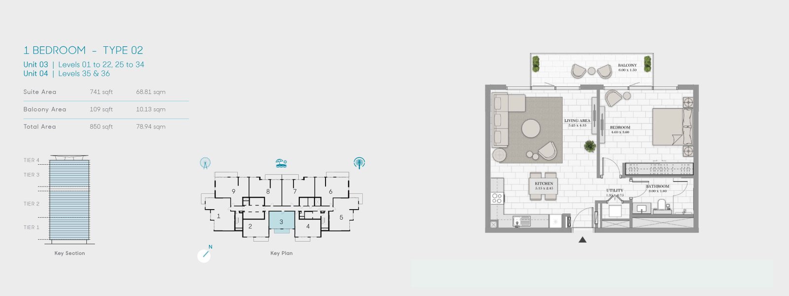 1 Bedroom - 1 Bedroom-Type 02, Size 850 Sq Ft 850.00 Sq Ft Apartment
