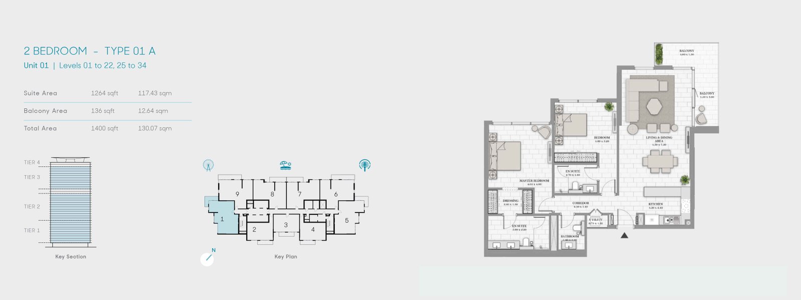 2 Bedrooms - 2 Bedroom-Type 01 A, Size 1400 Sq Ft 1400.00 Sq Ft Apartment