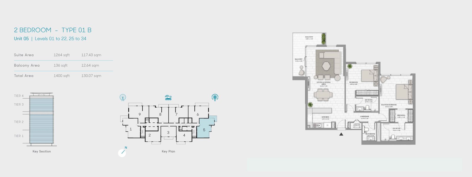 2 Bedrooms - 2 Bedroom-Type 01 B, Size 1400 Sq Ft 1400.00 Sq Ft Apartment