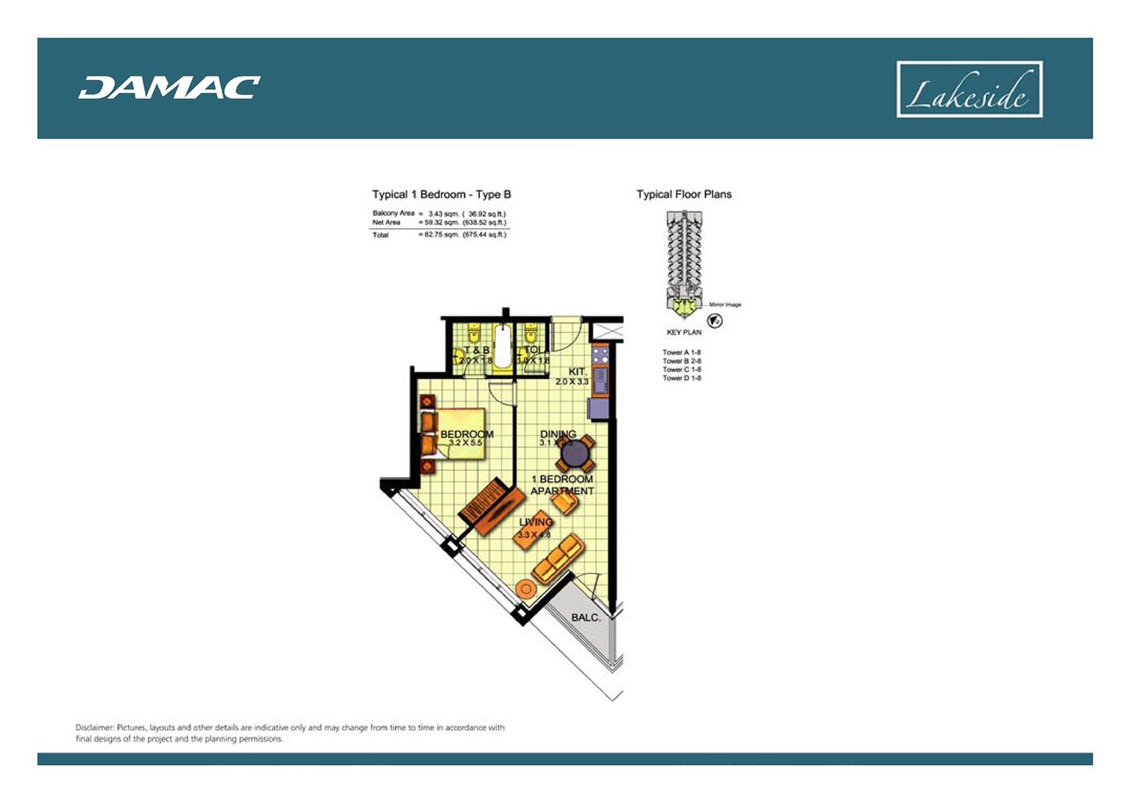 Tower A, B, C & D | - | Type B | 675.44 Sq Ft | Apartment |