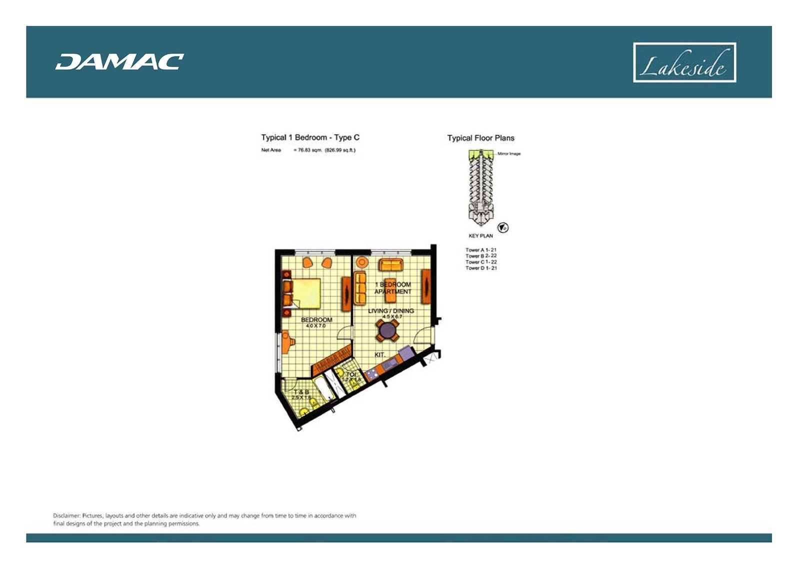 Tower A, B, C & D | - | Type C | 826.99 Sq Ft | Apartment |