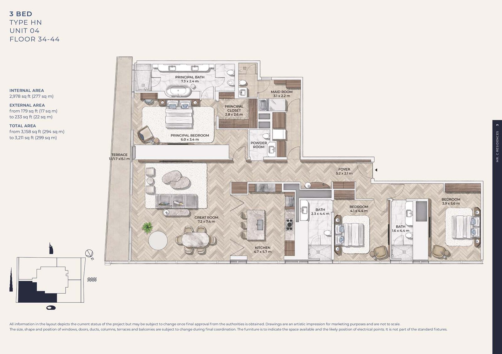 FLOOR 34-44 - TYPE HN (UNIT 04) 3211.00 Sq Ft Apartment