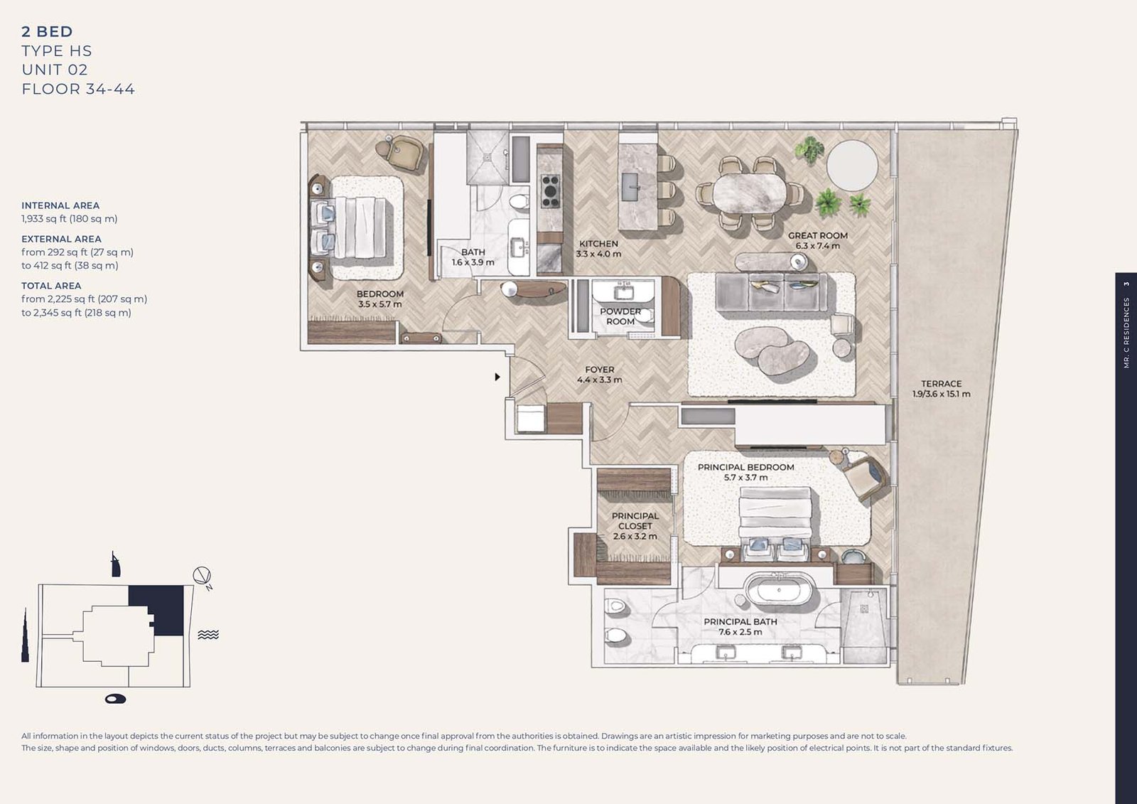 FLOOR 34-44 - TYPE HS (UNIT 02) 2345.00 Sq Ft Apartment