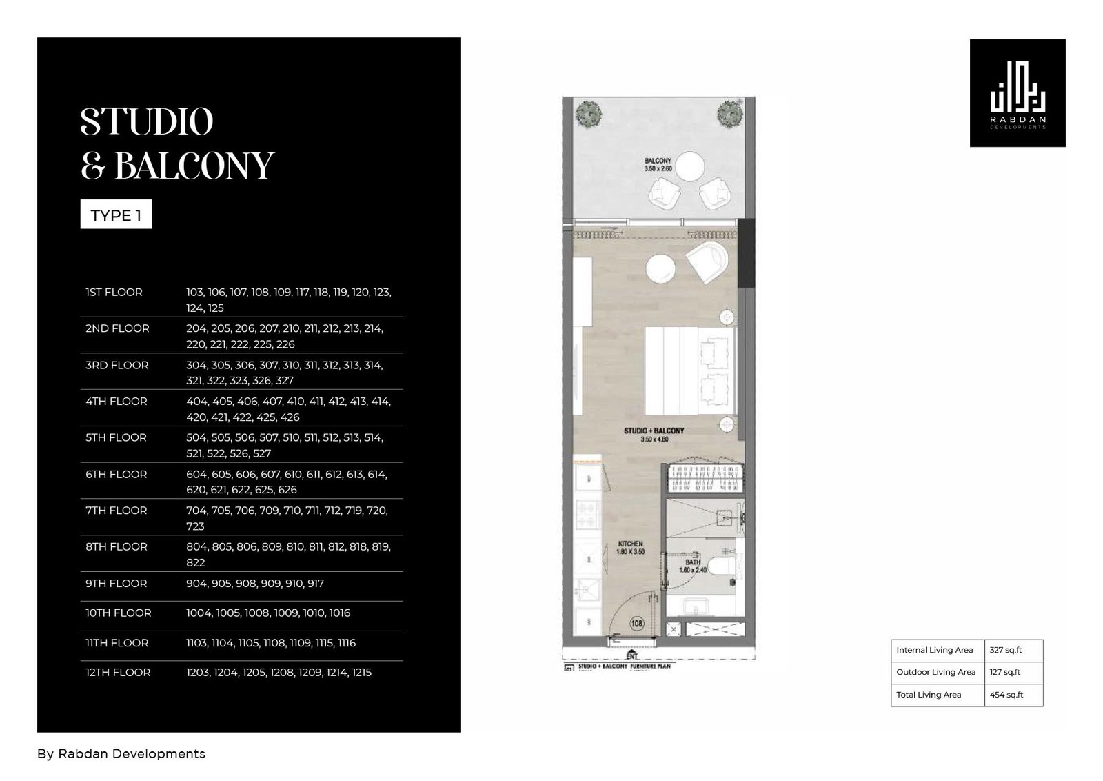 1ST-12TH FLOORS | - | TYPE 1 (UNIT 103-1215) | 454.00 Sq Ft | Apartment |