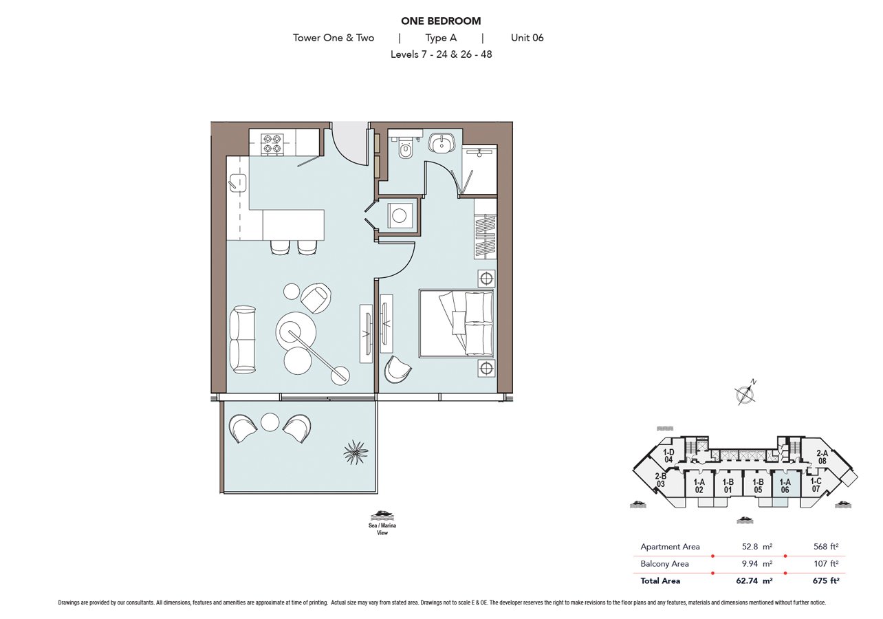Tower 1 & 2 - Type A, Unit 2 675.00 Sq Ft Apartment