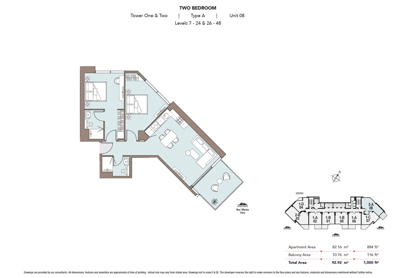 Tower 1 & 2 - Type A, Unit 8 1000.00 Sq Ft Apartment