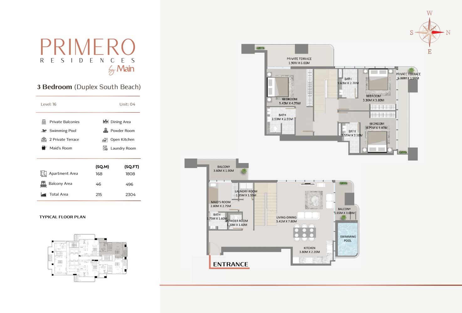 3 Bedroom | - | 3 Bedroom, Duplex South Beach | 2304.00 Sq Ft | Apartment |
