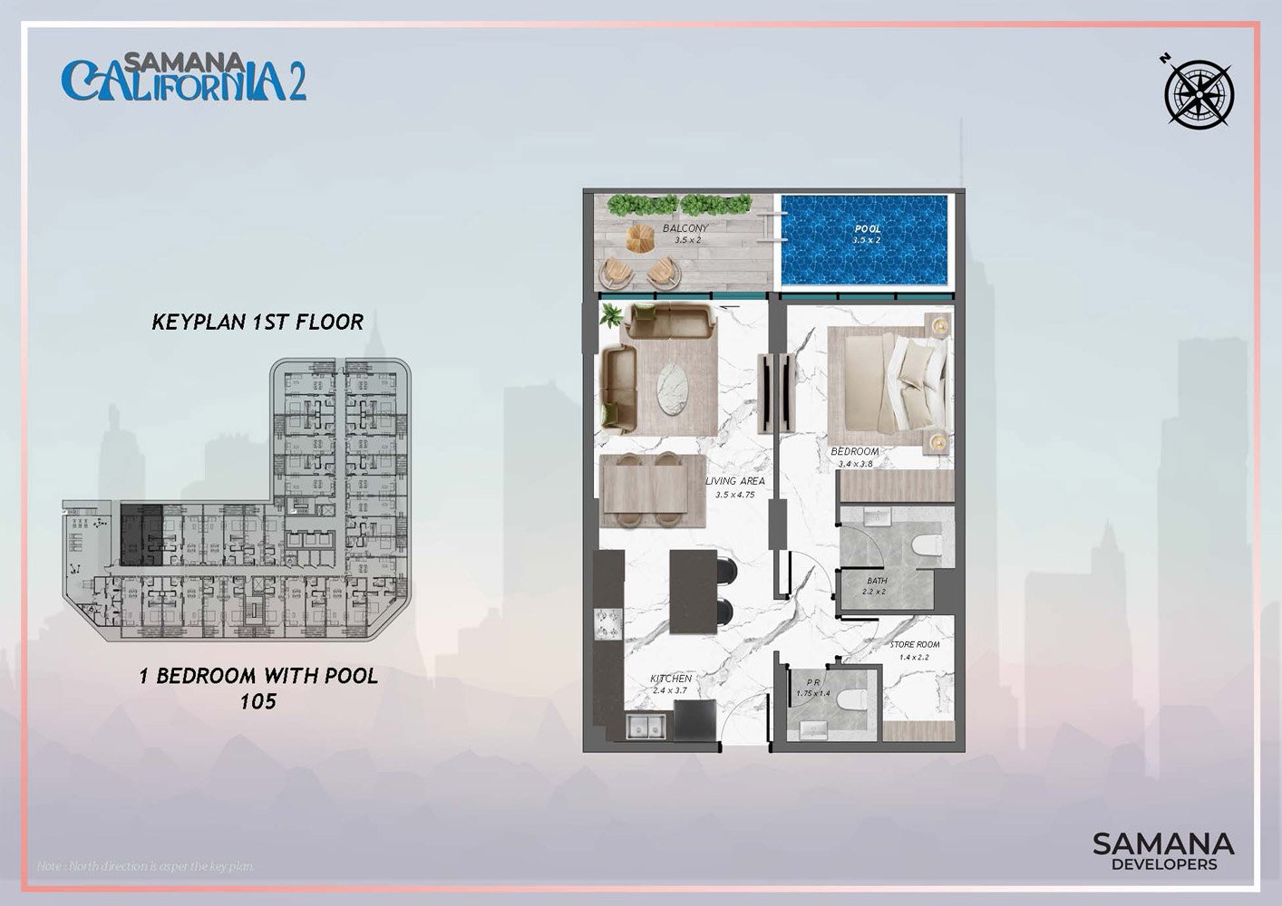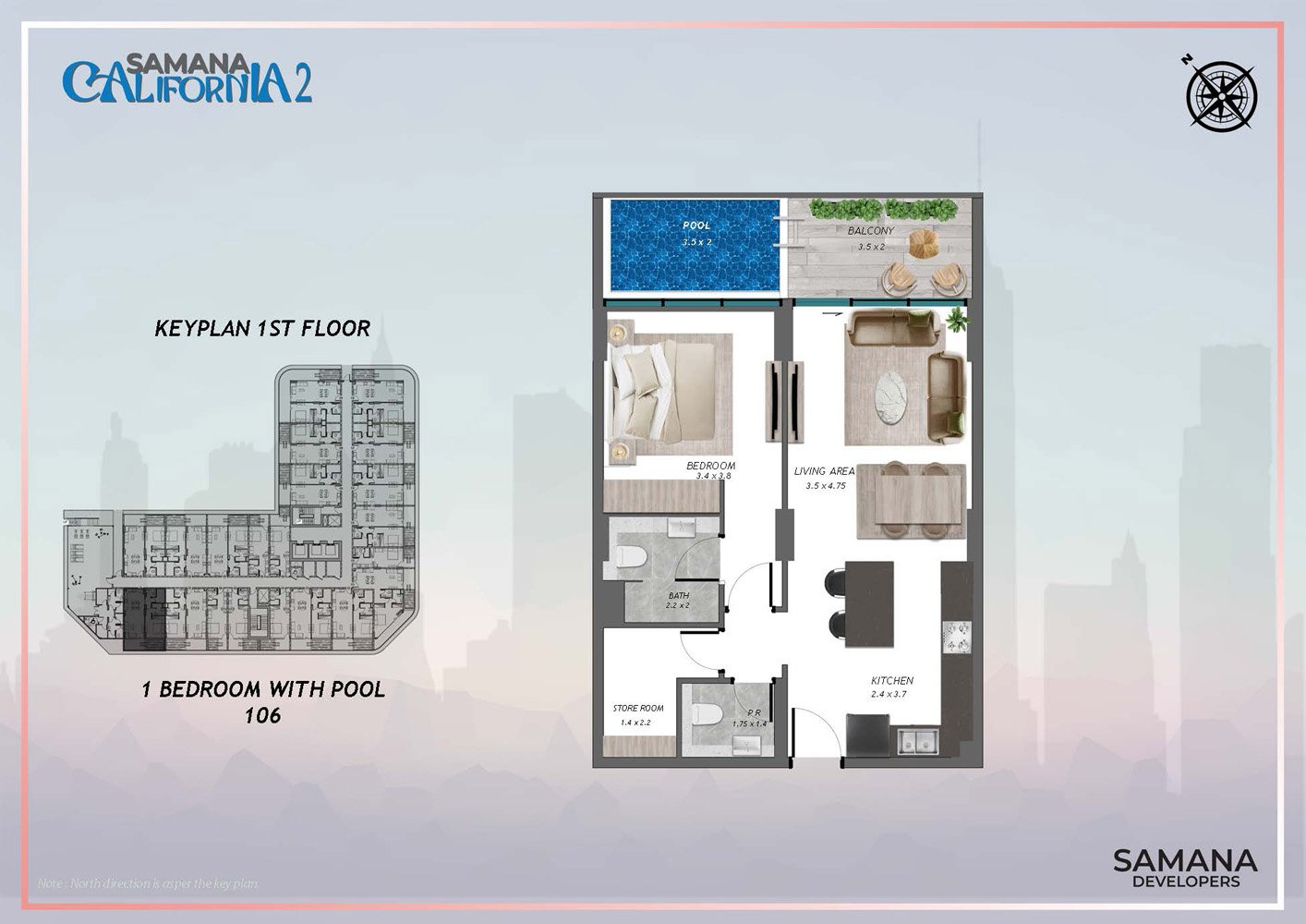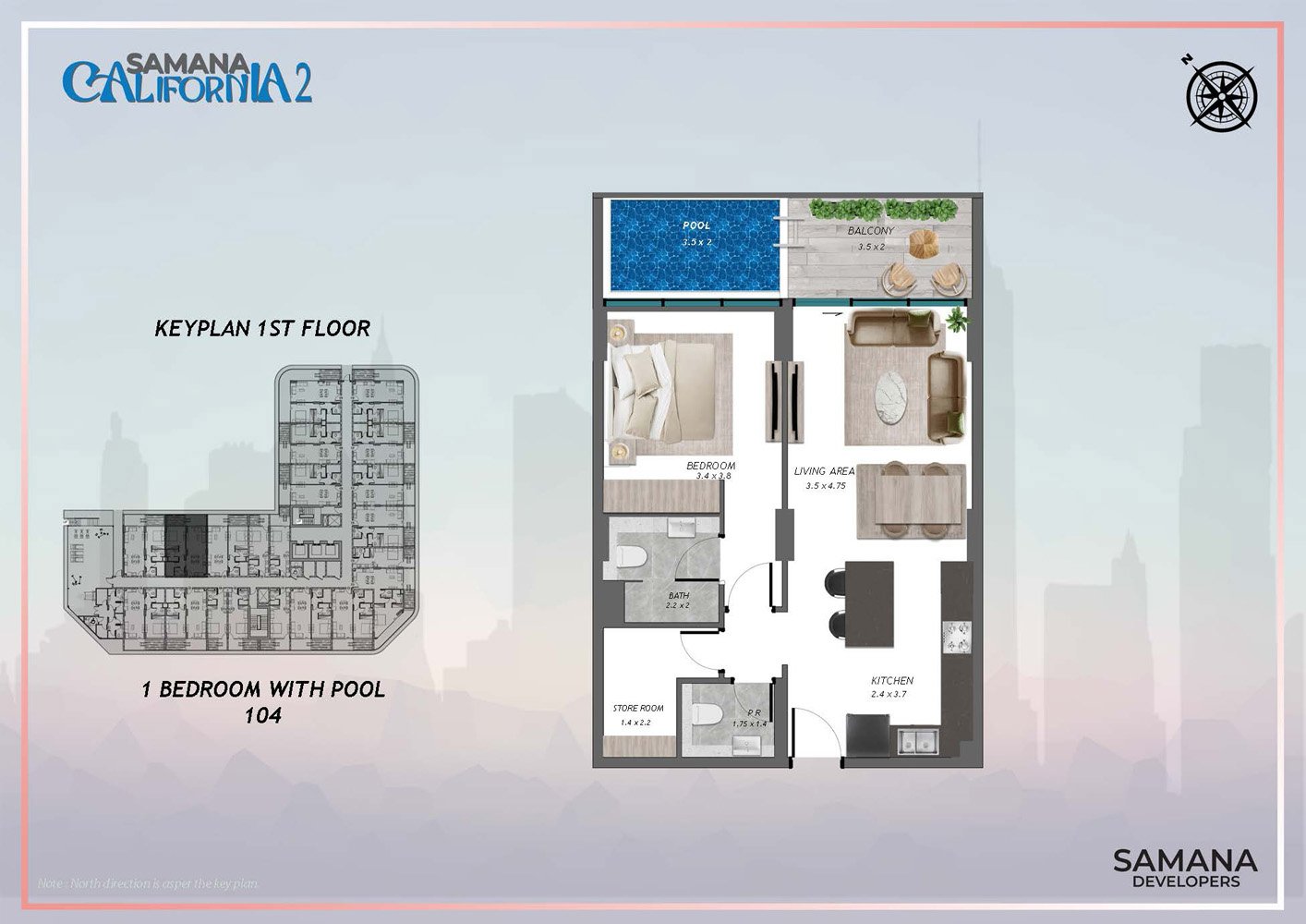 Discover an unparalleled living experience with Samana California 2 at Al Furjan, the latest offering from Samana Developers, featuring luxury studios, one and two-bedroom apartments, and duplexes complete with private pools. Following the successful launch of its predecessor, this remarkable property redefines luxury living by blending the relaxed charm of California with the vibrant cosmopolitan essence of Dubai. Ideally situated in Al Furjan, it is perfect for families seeking a close-knit community, with convenient access to the international airport and proximity to Jebel Ali Village and Discovery Gardens. The nearby Al Furjan Metro Station ensures excellent connectivity to the entire city. With its chic, contemporary architecture and futuristic interior design, every element of this residential property radiates elegance and comfort, offering an exceptional living experience. This 155-unit residential apartment complex, comprising ground plus podium plus ten floors plus rooftop, sets a new standard for comfort and luxury for those desiring an extraordinary lifestyle. A defining feature of this development is the inclusion of private pools in all apartments, allowing residents to unwind in the privacy of their own oasis, a hallmark of refined living. The property boasts a range of thoughtfully curated amenities aimed at enhancing your lifestyle. Residents can enjoy a luxurious leisure pool deck, a rooftop tennis padel court, a main pool, a water feature, and a splash pad for children, creating a perfect retreat for relaxation and recreation. There are dedicated play areas for children and spaces for hosting barbeque gatherings with family and friends. Facilities such as a Jacuzzi, indoor and outdoor gyms, a jogging track, an outdoor cinema, and sauna and steam rooms are available, ensuring that every resident can maintain a healthy and active lifestyle. Choose from studios, one and two-bedroom apartments, and duplexes each featuring private pools. This architectural marvel is positioned strategically between Sheikh Zayed Road and Sheikh Mohammed Bin Zayed Road, designed to offer the ultimate in comfort and luxury. The development harmoniously combines modern design with elegant touches, and the private pools within the apartments provide an unmatched level of luxury and privacy, creating personal sanctuaries of relaxation. The luxurious leisure pool deck, rooftop tennis padel court, and main pool enhance the leisure experience for residents, while the Jacuzzi, sauna and steam room, and private pools elevate everyday living to an extraordinary level.
