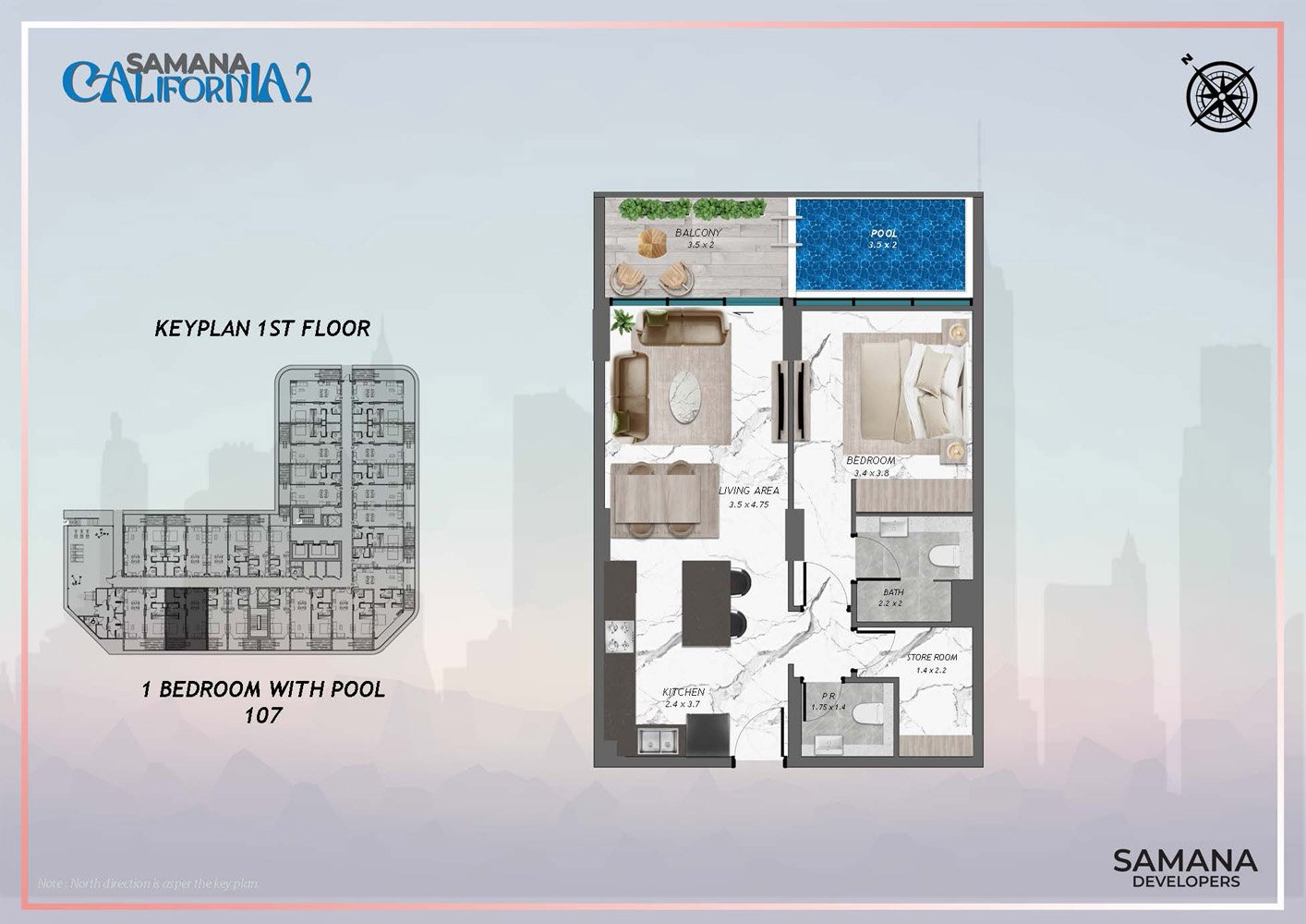 1st Floor | - | 1 Bedroom, 107 | On Request | Apartment |