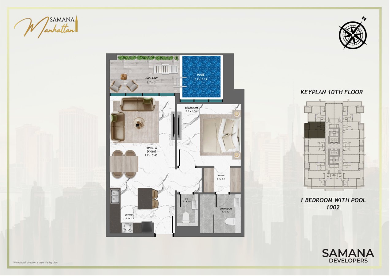 In the vibrant landscape of Dubai, Samana Manhattan at JVC stands out as a symbol of modern elegance and comfort, featuring studios, one-bedroom, and two-bedroom apartments with pools. This groundbreaking development by Samana Developers consists of three podiums and a striking 16-storey façade designed to offer residents an unmatched lifestyle where luxury and sophistication are present at every turn. Every detail has been thoughtfully crafted to foster a harmonious and contemporary living space, making it an iconic landmark in JVC. Ideally located in Jumeirah Village Circle (JVC), it provides residents with seamless access to Dubai's key locations and attractions. Its close proximity to Sheikh Zayed Road facilitates quick connections to the city’s vibrant hubs. Within just a five-minute drive, families will find Kids World Nursery, Little Wonders Nursery, and JSS International School, adding convenience for those with children. From cutting-edge architectural design to innovative interior concepts, this development exemplifies sophistication and elegance. The apartments are designed to deliver a luxurious living experience, featuring well-planned layouts and high-quality finishes. For those seeking an elevated lifestyle, select apartments come with private pools, allowing residents to enjoy a refreshing swim in their own oasis while taking in the breathtaking views of Dubai's skyline. This remarkable feature introduces an extraordinary level of exclusivity and luxury to daily life. Elegance is redefined in the heart of the city, where modernity and sophistication converge. This architectural marvel captivates with its sleek lines and striking presence, seamlessly blending form and function to invite exploration of the world within. Opting for this exclusive lifestyle as your new home opens the door to an exceptional way of living. Experience the pinnacle of modern living and indulge in unparalleled amenities, a prime location, and exquisite design. Begin your journey of luxury and refinement at JVC's most prestigious address. The development proudly offers a diverse range of amenities designed to enrich residents' quality of life. Whether you wish to stay active, relax, or socialize, there is something for everyone within this gated community. Maintain your fitness with state-of-the-art indoor and outdoor exercise facilities, or enjoy a friendly game of basketball with neighbors right outside your door. Select units feature the luxury of a private pool, while residents can also take advantage of the infinity pool and Jacuzzi, all while enjoying stunning vistas. The key highlights include a contemporary design with G+3P+16 floors that sets it apart from other developments, a luxurious selection of studios and one- and two-bedroom apartments with private swimming pools, opulent residences ideal for an upscale lifestyle, indoor and outdoor gyms catering to all workout needs, an on-site basketball court, a stylish Leisure Pool Deck where luxury meets relaxation, rejuvenating steam and sauna facilities, and an on-site jogging track. Each apartment includes a private swimming pool, allowing residents to savor leisurely aquatic moments.
