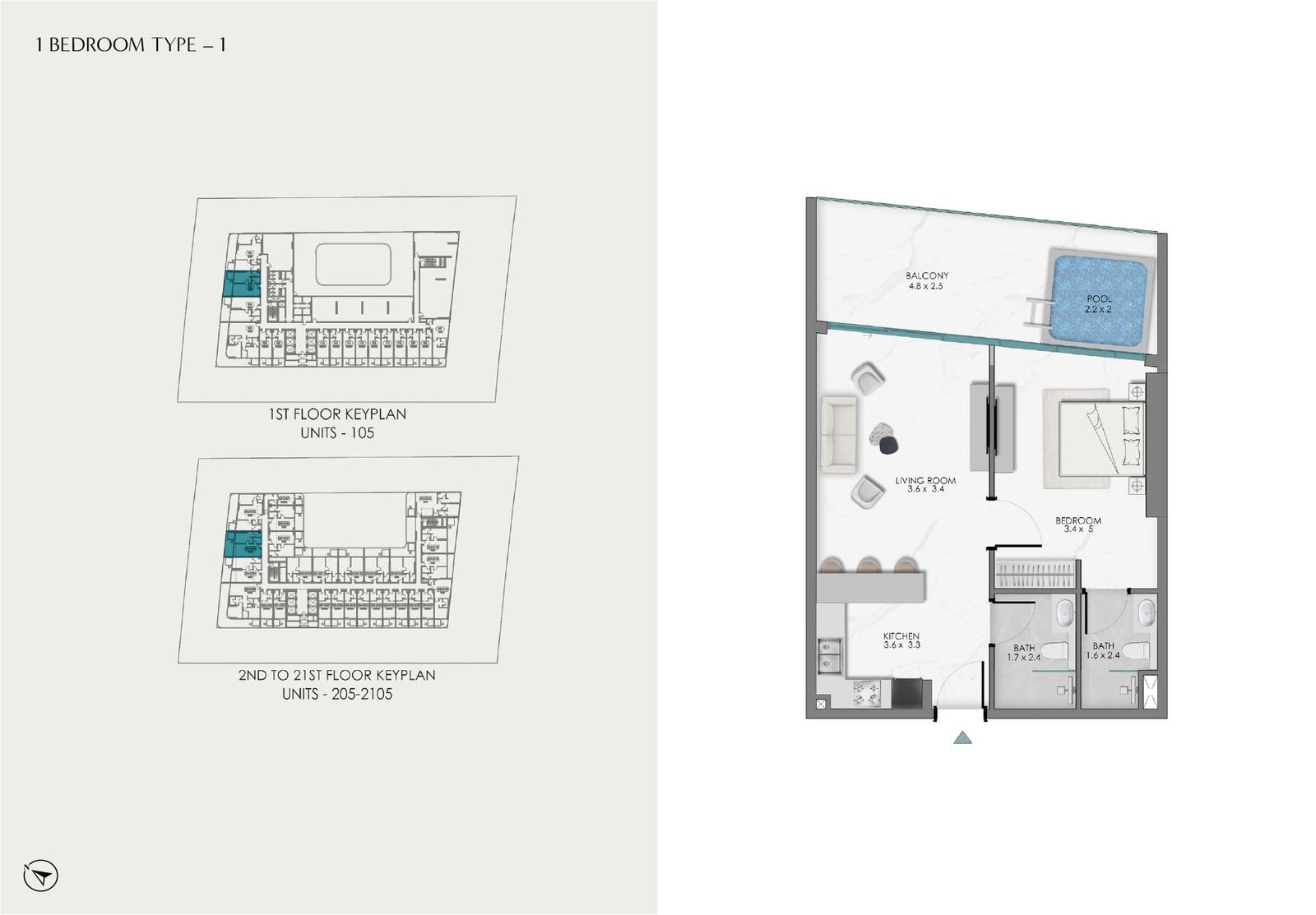 1st To 21st Floor - Type 1 (Unit 105-2105) On Request Apartment
