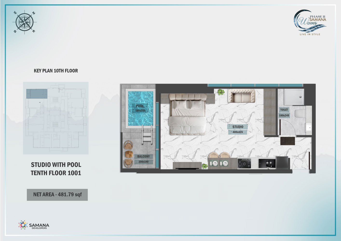 10th Floor | - | Unit 1001, Private Pool | 481.79 Sq Ft | Apartment |