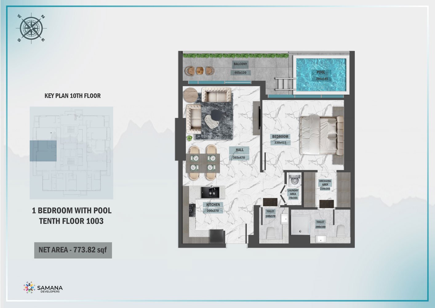 10th Floor | - | Unit 1003, Private Pool | 773.82 Sq Ft | Apartment |