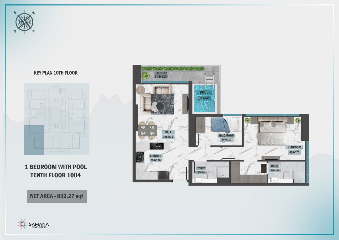 10th Floor | - | Unit 1004, Private Pool | 832.27 Sq Ft | Apartment |