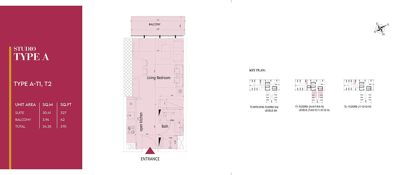 Studio - Type A-T1,T2 370.00 Sq Ft Apartment