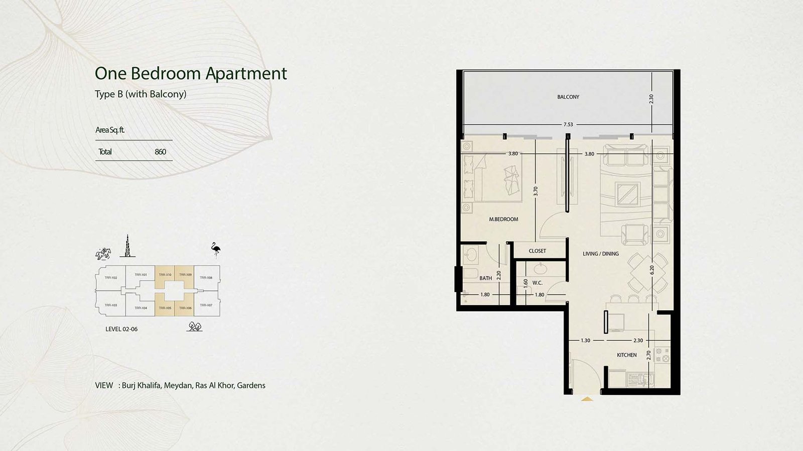 LEVEL 02-06 | - | TYPE B | 860.00 Sq Ft | Apartment |