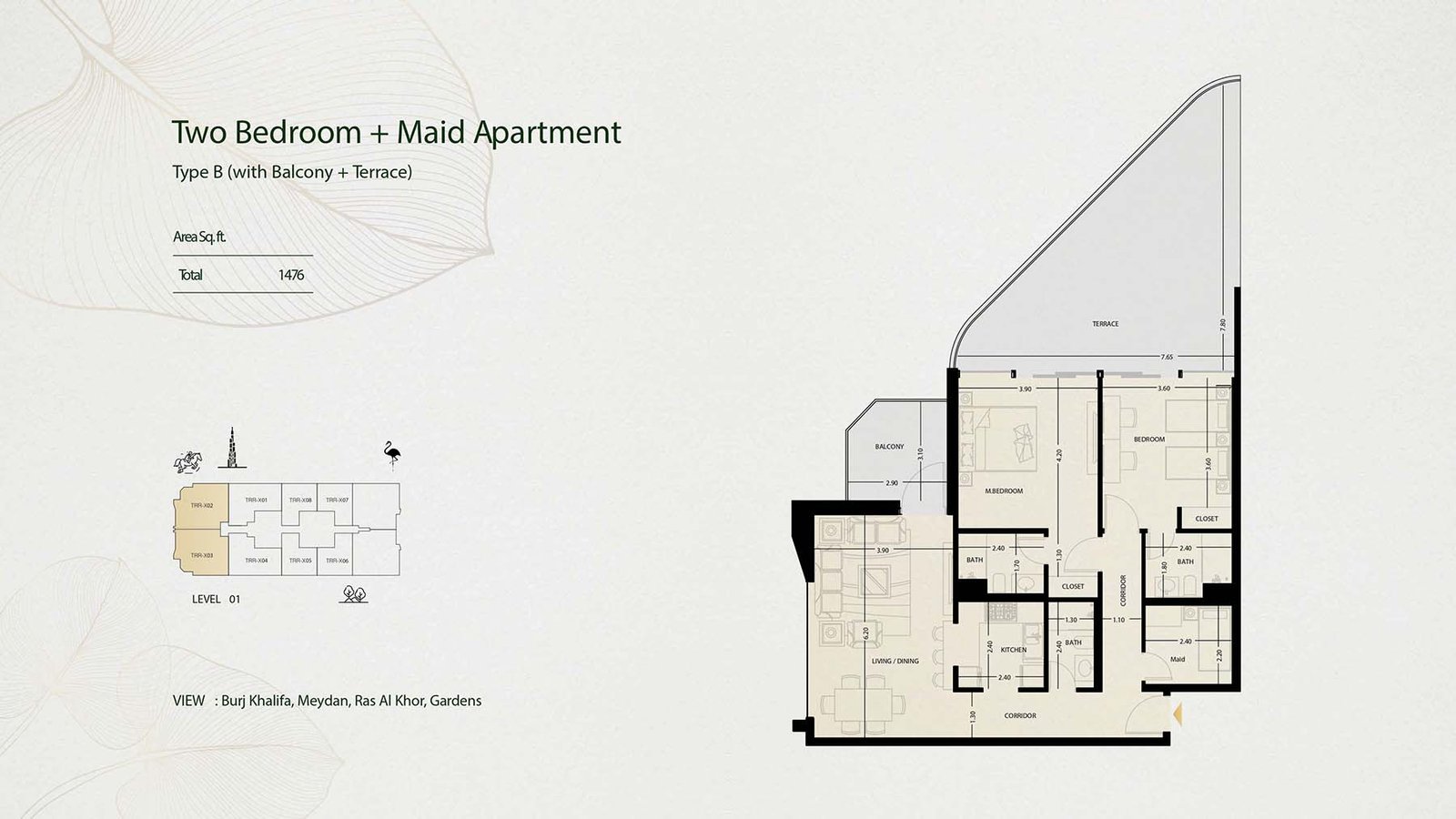 LEVEL 01 | - | TYPE B | 1476.00 Sq Ft | Apartment |