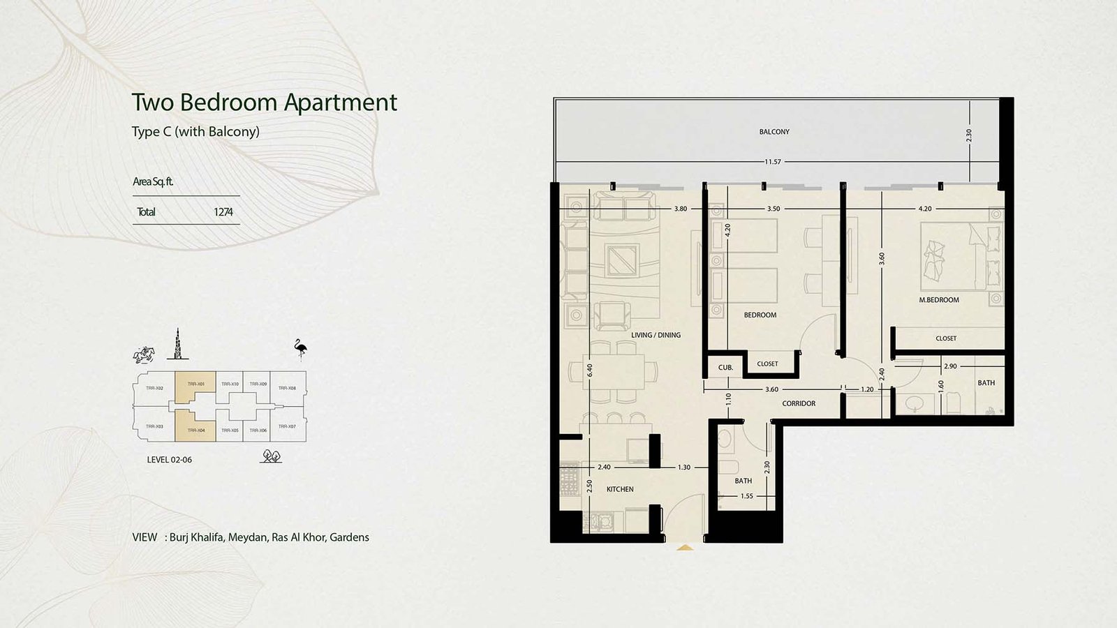 LEVEL 02-06 | - | TYPE C | 1274.00 Sq Ft | Apartment |