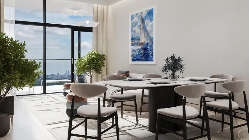The Roof Residence in Nad Al Sheba 1, developed by Soboh Development, represents a sophisticated fusion of contemporary design and timeless elegance. This upcoming project sets a new standard of living with 68 meticulously designed 1- and 2-bedroom apartments, ranging from 850 to 1,973 square feet, each featuring private balconies, expansive windows, and select units that include a maid’s room. The building's architectural layout consists of a combination of residential and commercial spaces with a G+2P+6F+R configuration. Inside, the apartments boast luxurious velvet furnishings and gilded accents, creating living rooms that radiate warmth and opulence, while the bedrooms are adorned with soft crystal lighting and plush details. Residents can enjoy breathtaking views of Burj Khalifa from their balconies, enhancing everyday life. The kitchens are designed with sleek countertops and state-of-the-art smart appliances, marrying style with practicality. The exterior of the building is equally impressive, featuring intricate patterns that shimmer in the sunlight, adding an exclusive touch to its design. The marbles used throughout the development resemble fine art, each showcasing unique swirls and colors that enhance their visual appeal. Conveniently situated along Al Ain Road (E66), the location provides exceptional access to key commercial hubs such as Business Bay and Downtown Dubai, with just a 13-minute drive to Downtown Dubai, 19 minutes to Palm Jumeirah, and 12 minutes to Dubai Mall. Additionally, Meydan Racecourse is only a quick 5-minute trip away, and Dubai International Airport is a mere 20 minutes away. The development offers direct access to several supermarkets, including Spinneys and Aswaaq, Nad Al Sheba Market, and some of the finest schools in the area. Residents will also find nearby recreational options such as Nad Al Sheba Cycle Park, Meydan Golf, Body Impulse EMS Fitness Studio, and UFC gym in Business Bay. The vicinity boasts exquisite dining options like The Track Restaurant and Shiba, as well as shopping venues including Nad Al Sheba Mall and Dubai Mall. The developer presents a reasonable and flexible payment plan tailored to accommodate various financial situations, requiring an initial booking payment of just 20%. Purchasers can complete the cost of ownership through six manageable installments of 5% each over several months, culminating in the final payment 12 months after handover. This approach facilitates access to this prime property without financial strain. The Roof Residence features luxury 1- and 2-bedroom apartments in Nad Al Sheba 1, with interiors showcasing velvet furnishings, gilded accents, floor-to-ceiling windows, and crystal lighting. Each balcony provides stunning views of Burj Khalifa and Meydan Racecourse, while the exterior is distinctively patterned to highlight its architectural elegance. Kitchens are equipped with sleek countertops and smart appliances, all strategically located near Business Bay, Downtown Dubai, Dubai Mall, and Meydan Racecourse, with numerous supermarkets, schools, mosques, and fitness facilities in close proximity. The project also offers flexible payment plans with easy installment options.