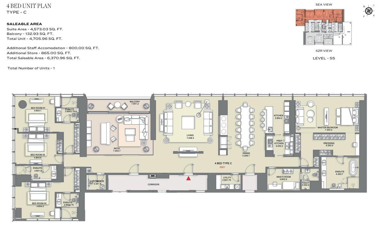 4 Bedroom | - | Type C | 4705.96 Sq Ft | Apartment |
