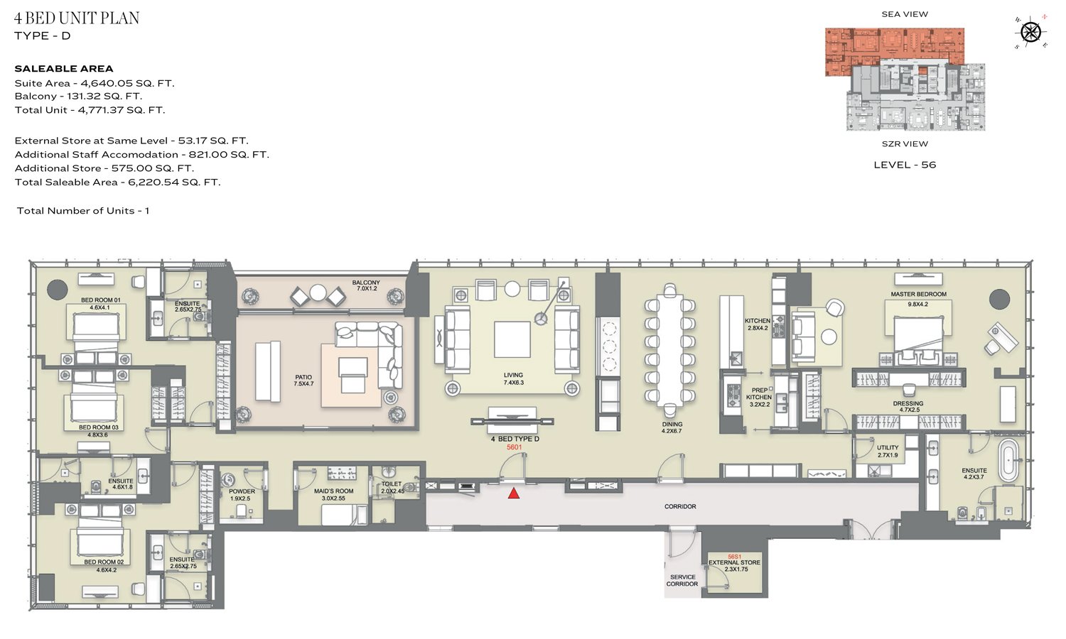 4 Bedroom | - | Type D | 4771.37 Sq Ft | Apartment |