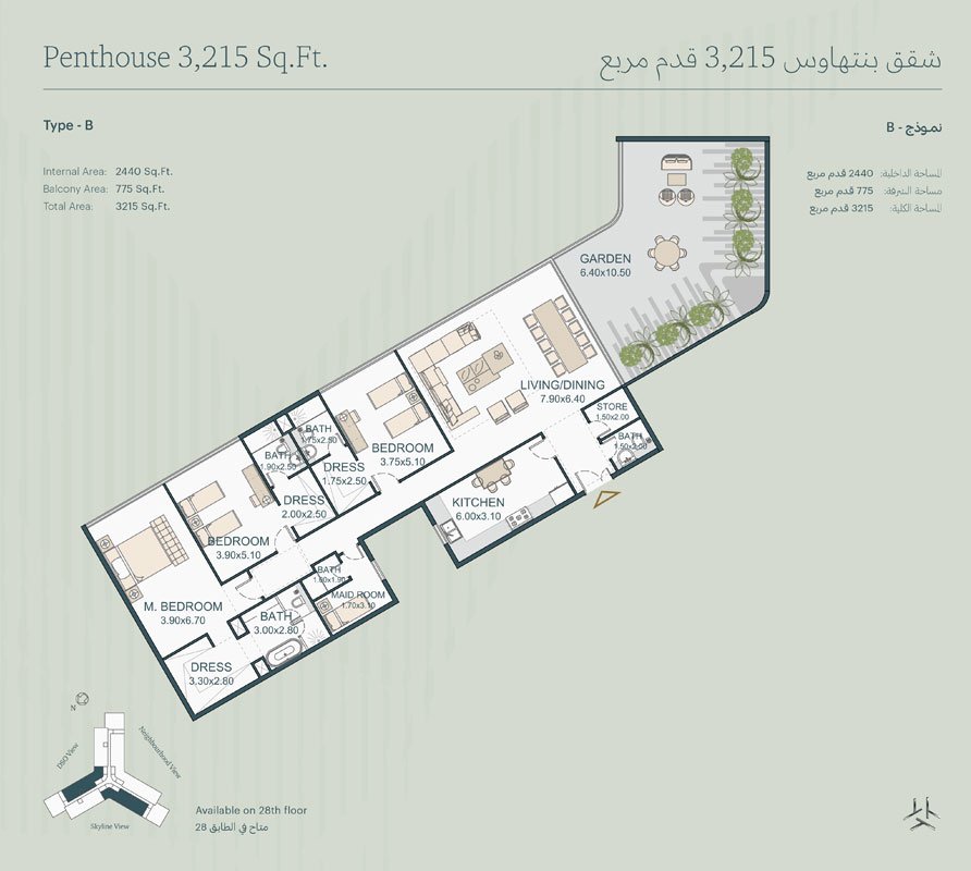 3 Bedroom | - | Penthouse, Type B | 3215.00 Sq Ft | Apartment |