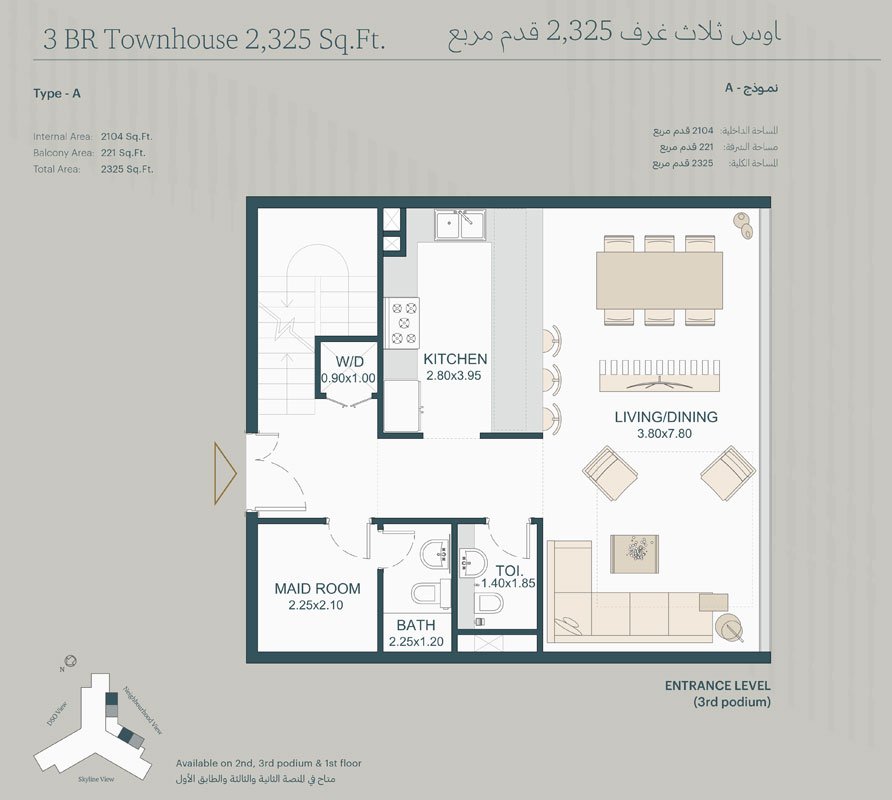 3 Bedroom | - | Townhouse, Type A, Entrance Level (3rd Podium) | 2325.00 Sq Ft | Apartment |