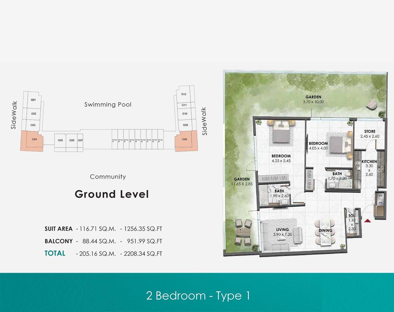 2 Bedroom - Type 01 2208.00 Sq Ft Apartment