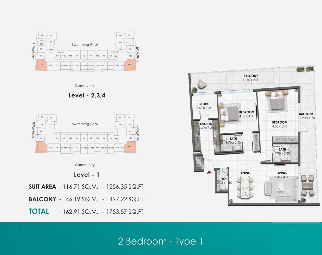 2 Bedroom - Type 01 1753.00 Sq Ft Apartment