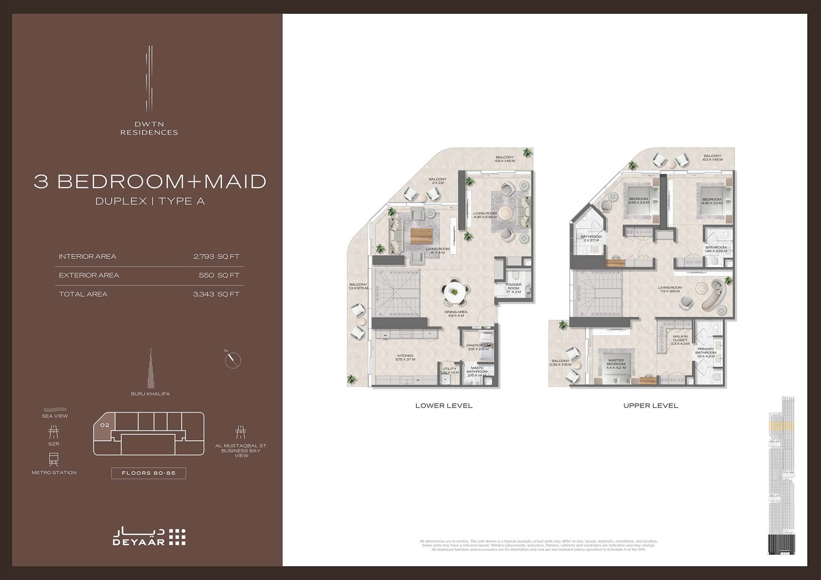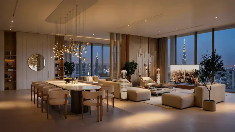 DWTN Residences by Deyaar stands as a remarkable vertical achievement soaring 445 meters above the vibrant skyline of Dubai, featuring exclusive 1 to 3-bedroom apartments, duplexes, penthouses, and a Royal Palace. This towering structure transcends mere architecture; it symbolizes a new legend in the making, embodying an ideology and offering an immersive experience that lifts residents high above the city at 445 meters across 110 meticulously designed floors of luxury. Known as Downtown Residences, this development is envisioned by one of the UAE's most esteemed developers and is set to rank among the top 10 tallest residential towers in Dubai. Each contour of its bold exterior and every detail of its artistic interior exemplifies beauty, functionality, and the perfect fusion of construction and emotional resonance. It is more than just a place to live; it is a heritage and a landmark poised to redefine the skyline and lifestyle of Downtown Dubai. The allure is undeniable, as few places in the world offer such a harmonious blend of vibrancy, accessibility, and prestige as Downtown Dubai. These exclusive residences proudly benefit from their prime location, nestled within the so-called golden triangle formed by Sheikh Zayed Road, Business Bay, and Downtown, ensuring unparalleled proximity to Dubai's most iconic landmarks. Burj Khalifa, The Dubai Mall, Dubai International Airport, Jumeirah Beach, and Dubai Water Canal are mere minutes away, placing residents at the heart of the city's cultural, financial, and leisure hubs. This extraordinary location promises not only breathtaking views but also a lifestyle characterized by seamless movement and deep immersion. The architectural philosophy is both powerful and poetic, with a design that uniquely balances aggression and fluidity. A striking vertical slot runs through the center of the tower, transforming it into a sculptural masterpiece illuminated by natural light. This bold feature creates a dynamic facade, allowing light to dance across its strong silhouette. Every edge, curve, and surface reflects precision and elegance, solidifying its status as an emblem of Dubai's progressive architectural landscape. This high-rise does not merely rise above its surroundings; it commands the skyline and heralds a new era of high-rise living. More than an architectural icon, this tower houses a vertically integrated ecosystem of over 75,000 square feet of innovative amenities, thoughtfully designed around six thematic realms. Starting at the House of Commons on the ground floor, residents and their guests are welcomed by a grand double-height lobby adorned with curated art, opulent lounge areas, and elegant café-style settings—luxury is evident from the very first step. Ascend to the House of Heirs, a family sanctuary featuring Montessori-inspired play areas, children’s pools, event lawns, and stylish winter kitchens designed for creating lifelong memories. Further along, the House of Wellness offers a sanctuary for rejuvenation and mindfulness, complete with steam rooms, zen pools, personalized gyms, and yoga sanctuaries, redefining wellness as both scientific and serene. For those who appreciate social gatherings, Maison Amis provides an atmosphere of sophistication and warmth, featuring a cinema room, cigar lounge, tea patio, private dining rooms, and a golf simulator to indulge every desire. The Sky Club & Park levels blend business and lifestyle, offering executive offices, podcast studios, libraries, and conference rooms with stunning skyline views. Finally, ascend to Cloud Nine on Level 91, the closest one can get to heaven in Dubai, featuring an infinity pool, exceptional fine dining, and an observation deck with unobstructed views of the gulf and the Downtown skyline—this is the destination for celebrating life's greatest achievements. Key highlights include this monumental residential legacy, poised to rank among the top 10 tallest residential towers in Dubai, rising 445 meters with 110 sculptural floors. Perfectly located at the intersection of Sheikh Zayed Road, Business Bay, and Downtown Dubai, it boasts a prestigious address. With only 432 premium apartments, 76 duplexes, 13 grand penthouses, and a unique Royal Palace, each layout is thoughtfully designed with expansive glass facades. The tower reimagines vertical living through six thematic ecosystems that encompass wellness, business, social connections, and sky-high celebrations. The journey begins at the House of Commons, showcasing a grand double-height lobby, curated art installations, plush lounges, valet service, and refined brasserie-style cafés. On levels 27 to 29, the House of Wellness offers a comprehensive wellness experience with spa-quality treatment rooms, zen gardens, meditation studios, and fitness areas. At the pinnacle of the tower, Cloud Nine on the 91st floor invites residents to a realm of elevated celebration featuring an infinity-edge sky pool and an observatory lounge.