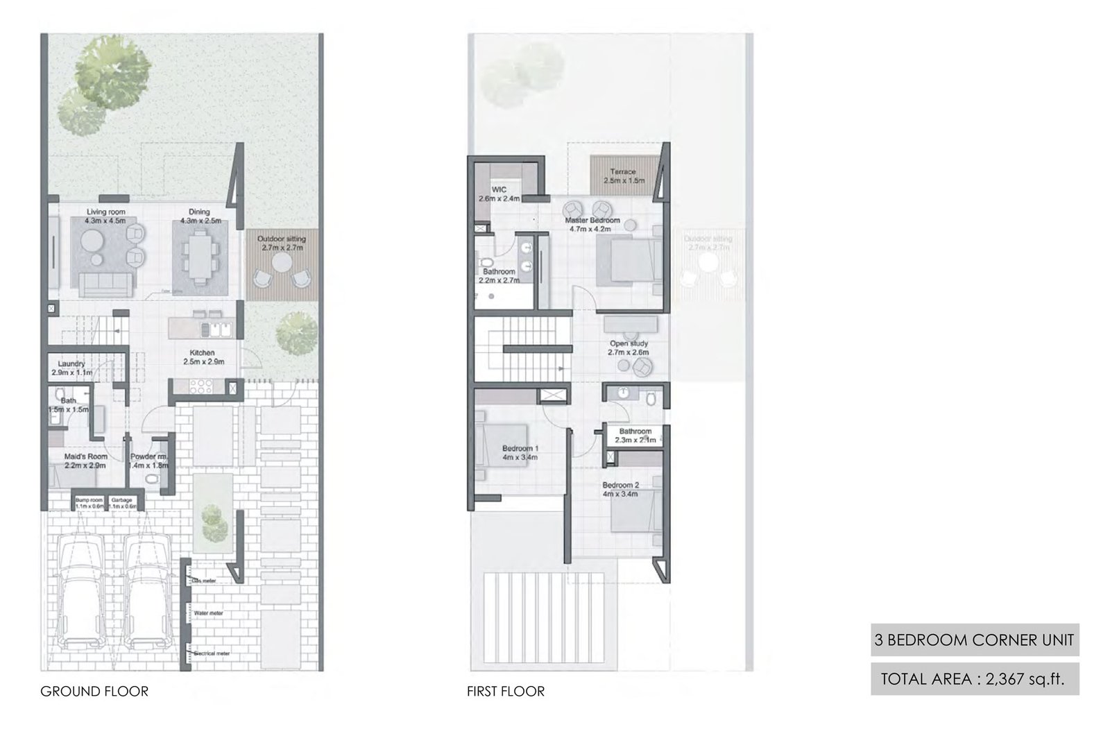3 Bedrooms - 3 Bedroom Corner Unit Size 2367 sqft 2367.00 Sq Ft Townhouse