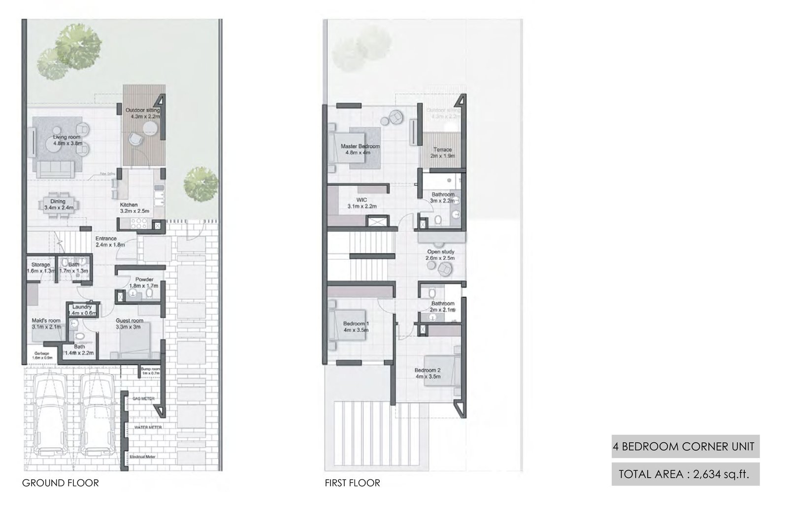 4 Bedroom - 4 Bedroom Corner Unit Size 2634 sqft 2634.00 Sq Ft Townhouse