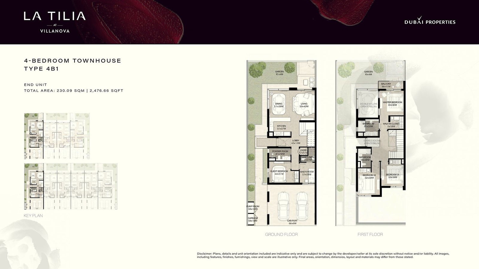 La Tilia at Villanova stands out as an exceptional new development in Dubailand, brought to life by Dubai Properties, featuring an exclusive selection of luxurious 3 and 4-bedroom townhouses. Situated in the highly sought-after Villanova community, this project follows the successful community series, presenting an excellent opportunity for both homeowners and investors. This vibrant neighborhood is meticulously designed to provide a harmonious environment conducive to family life. The spacious and contemporary homes prioritize comfort and functionality, surrounded by lush green spaces that promote a relaxed lifestyle along with a variety of leisure and recreational options. Strategically positioned in the heart of Dubailand, the development offers unmatched connectivity to key destinations in Dubai. Easily accessible via Emirates Road and major thoroughfares such as Sheikh Mohammed Bin Zayed Road and Al Ain Road, residents benefit from a central location that facilitates convenient travel to Downtown Dubai, the cultural richness of Global Village, and Al Maktoum International Airport. More than merely a residential project, this thoughtfully designed community enables families to flourish. With expansive green parks, tree-lined pathways, and engaging amenities, the neighborhood nurtures a close-knit atmosphere. The development focuses on creating spaces that encourage interaction and connection, offering families a place to bond, grow, and thrive. The park features shaded trails for walking, jogging, and cycling, inviting residents to lead an active lifestyle while enjoying the natural beauty around them. The architectural design of the townhouses showcases a seamless integration of modern aesthetics and nature, characterized by clean lines, warm tones, expansive balconies, and floor-to-ceiling windows that enhance the indoor-outdoor connection. This design philosophy fosters a harmonious living environment, where bright and airy interiors are filled with natural light, complemented by contemporary finishes and open layouts that exude elegance and comfort. The extensive amenities provided support a holistic lifestyle, with facilities aimed at enhancing physical health, social connections, and leisure activities. The fitness zone includes multi-purpose courts, a padel court, and a football field, promoting active living. For those seeking relaxation, the community pool offers a serene escape, positioned to overlook the townhouses and surrounded by lush greenery, creating a tranquil environment perfect for unwinding while maintaining a connection to the residential area. Key highlights include spacious 3 and 4-bedroom townhouses with thoughtful layouts and high ceilings that balance elegance with practicality. The prime location in Dubailand ensures direct access to major highways like Emirates Road and Sheikh Mohammed Bin Zayed Road. The community is enveloped in landscaped parks and tree-lined pathways that encourage a serene lifestyle amidst nature. Residents can enjoy a resort-style beach lagoon designed for tranquility and relaxation. With amenities like children's play areas, sports courts, jogging trails, and a community pool, every facility is crafted to foster family bonding and active living. The modern architectural design features sleek exteriors in warm tones, complemented by floor-to-ceiling windows that harmonize with the natural surroundings. Dedicated fitness and sports zones, including multi-purpose courts, a padel court, and cycling paths, further promote a healthy and active lifestyle.