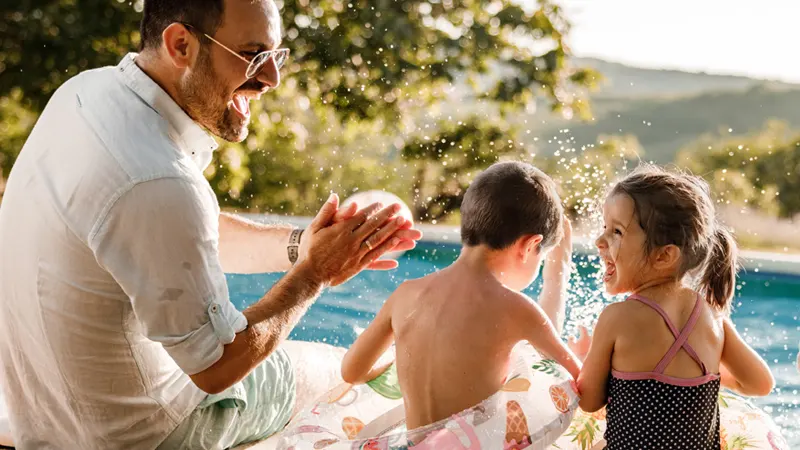 A swimming pool where the water flows over one or more edges.