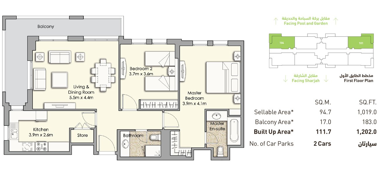 2 Bedrooms | - | 2-Bedroom-Building-A, Size-1,202 sq.ft | 1202.00 Sq Ft | Apartment |