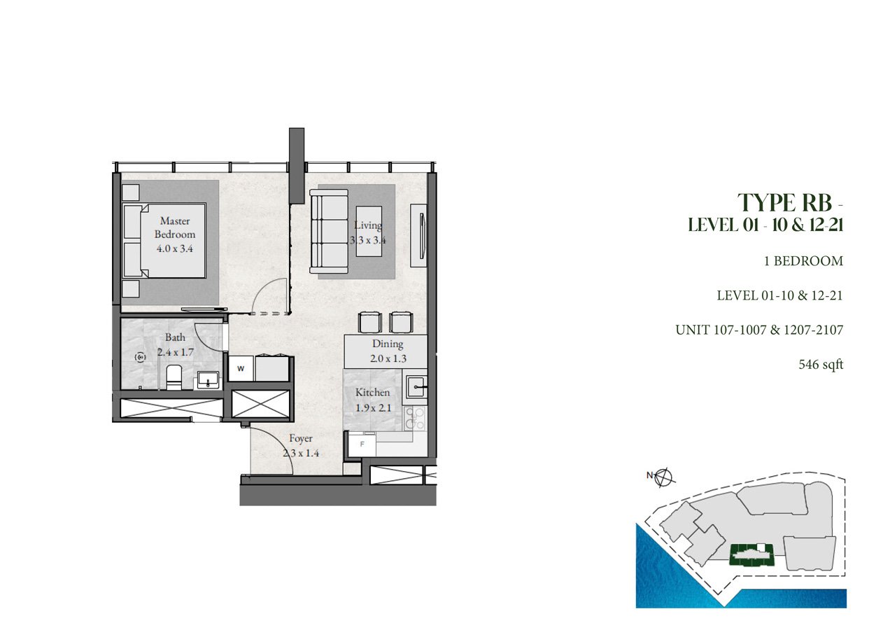 1 Bedroom | - | Type RB, Level 1-10 & 12-21 | 546.00 Sq Ft | Apartment |
