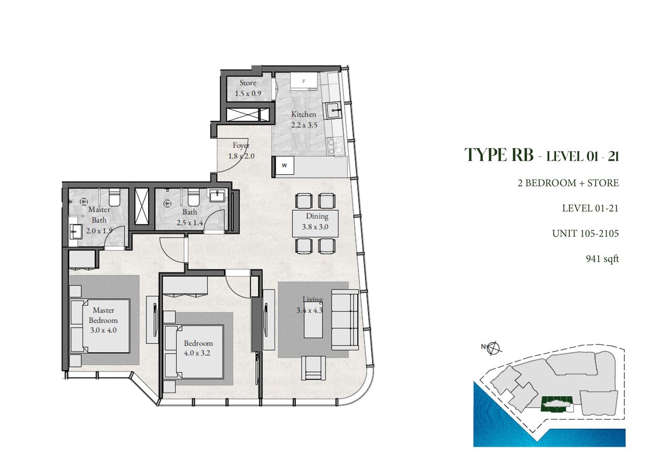 2 Bedroom | - | Type RB, Level 1-21 | 941.00 Sq Ft | Apartment |