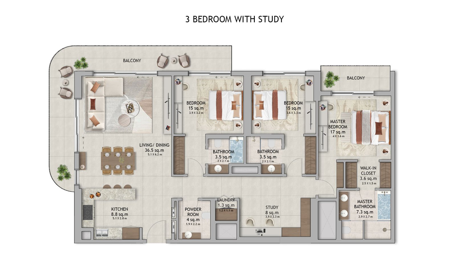 3 Bedroom | - | 3BHK with Study | On Request | Apartment |