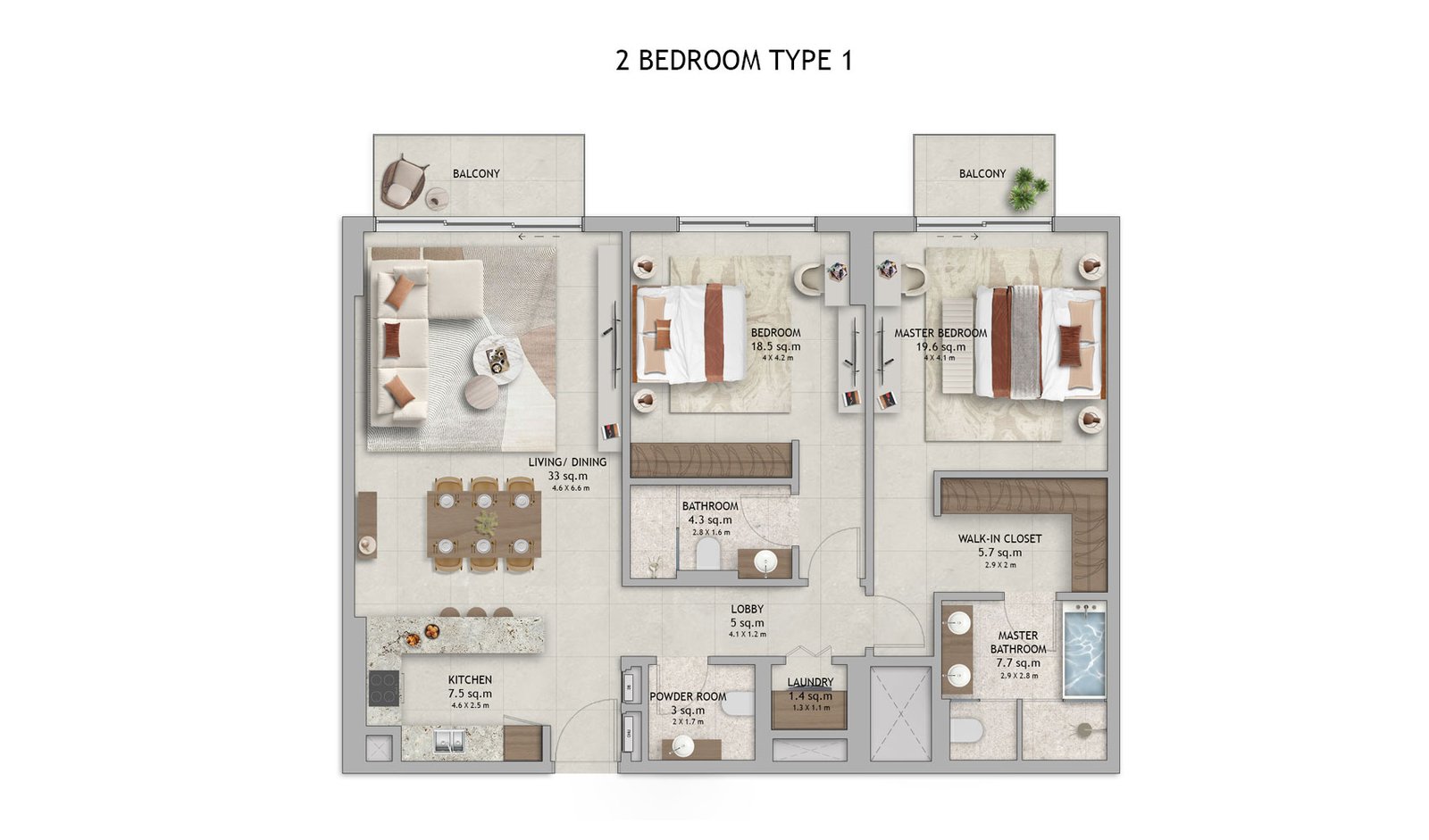 2 Bedroom | - | Type 1 | On Request | Apartment |